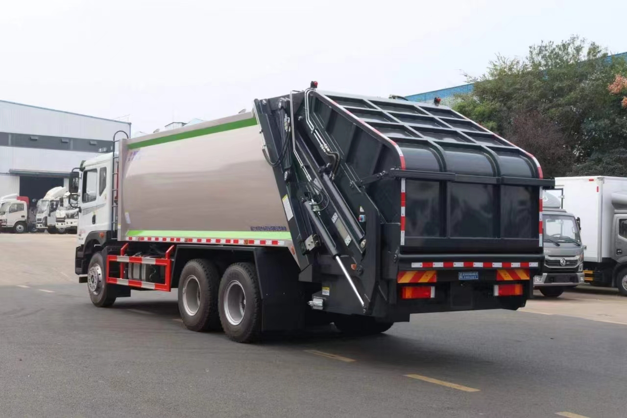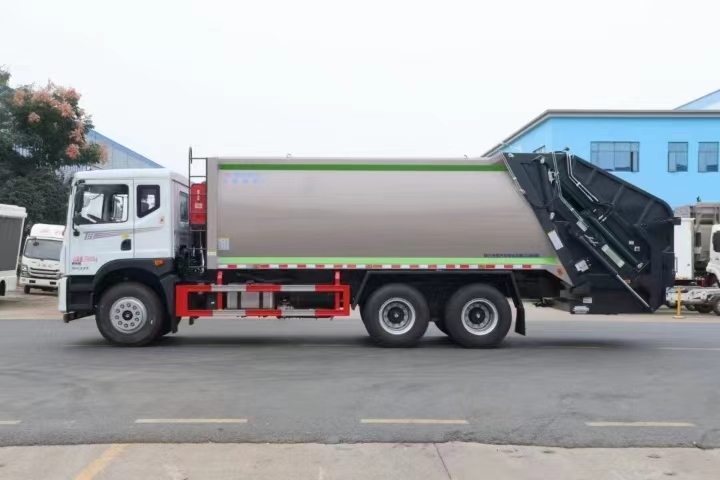| 上裝配置 | 新款弧形箱體,箱體容積加大約22立方,箱體為優(yōu)質(zhì)高強度Q345錳鋼制作,底箱及填充器采用加厚鋼板,耐腐蝕使用壽命長,三層油漆噴涂處理/電泳工藝。裝載循環(huán)以及垃圾排出時間快,上裝部分具備雙向壓縮和蠕動壓縮功能帶。新款結(jié)構(gòu)加大填充器,手電一體操作模式,帶駕駛室操作,帶駕駛室一鍵卸料功能,尾部裝置可以選裝垃圾翻轉(zhuǎn)斗,掛桶翻轉(zhuǎn)板或者大落地斗。PLC/CAN總線控制方式,光電開關加延時雙系統(tǒng)控制,降低故障率,方便維修。帶夜間照明裝置,帶污水箱,標配選用:定制油缸(質(zhì)保兩年),中梅多路閥,液壓油泵(雙泵雙閥),帶液壓散熱器,嘉善取力器。 | ||