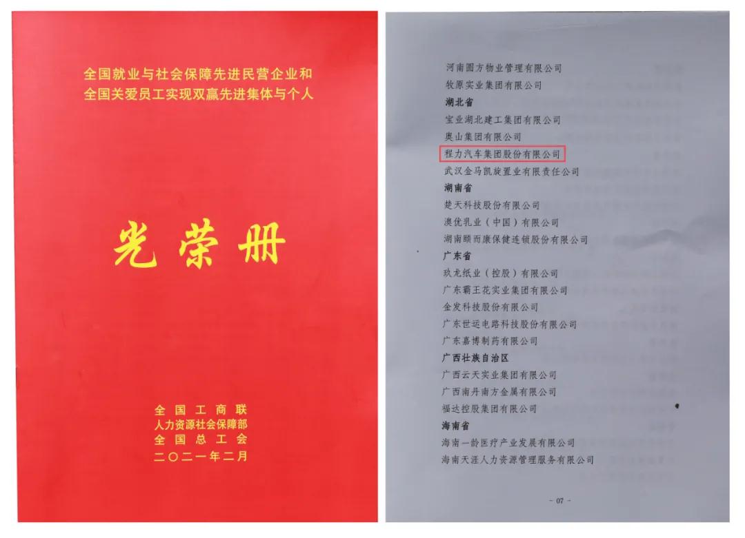 3月2日,程力汽車集團(tuán)股份有限公司收到國(guó)家人力資源和社會(huì)保障部、中華全國(guó)工商業(yè)聯(lián)合會(huì)、中華全國(guó)總工會(huì)聯(lián)合頒發(fā)的“全國(guó)就業(yè)與社會(huì)保障先進(jìn)民營(yíng)企業(yè)”榮譽(yù)證書及牌匾,這是程力汽車集團(tuán)股份有限公司在2021年初被授予的開門紅全國(guó)性殊榮,也是程力集團(tuán)繼2020年連續(xù)三次受到全國(guó)性榮譽(yù)表彰。