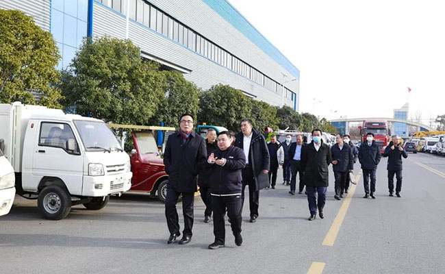 王志才總經(jīng)理一行領(lǐng)導(dǎo)及負(fù)責(zé)人,不畏凜冬寒冷,先后步行參觀程力(曾都)汽車工業(yè)園、程力南郊汽車裝備制造工業(yè)園兩大基地。來(lái)賓們看產(chǎn)品、下車間、問(wèn)工藝,無(wú)一不細(xì)致入微,調(diào)研考察工作扎實(shí)認(rèn)真高效。