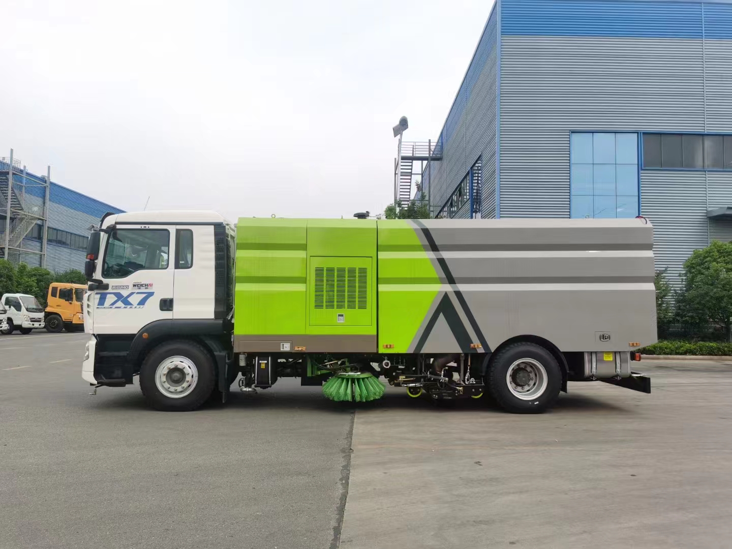 | 上裝配置 | 副發(fā)康機170馬力,廈門南超免維護自動離合器,免維護風(fēng)機,海德瑞沃電磁閥組,德國進口高壓泵,萬向高壓路沿清洗,耐磨液壓油缸,西門子電控開關(guān),左右、后噴霧壓塵系統(tǒng),不銹鋼垃圾箱及碳鋼水箱電泳防銹處理,水箱容積9立方左右,垃圾箱容積7立方左右,最大清寬度3.5米,前置兩掃盤,中置吸盤,手動泵應(yīng)急系統(tǒng),多種語音報警尾部箭頭燈。 隨車配備低壓沖洗前沖后灑及高壓沖洗功能(前路沿沖洗/中沖/20米高壓沖洗卷盤/后噴霧/垃圾箱自潔)尾部箭頭作業(yè)燈。 | ||